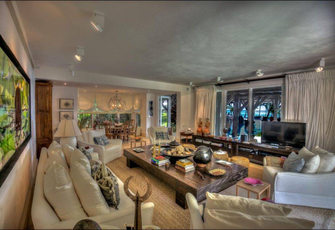 The master bedroom has an enormous king-sized bed, a spacious bathroom and a writing desk that overlooks the pristine waters. There are two bedrooms with queen-size beds and two with doubles. All bedrooms feature en-suite facilities and are equipped with flat-screen TVs, a DVD player and a walk-in wardrobe.