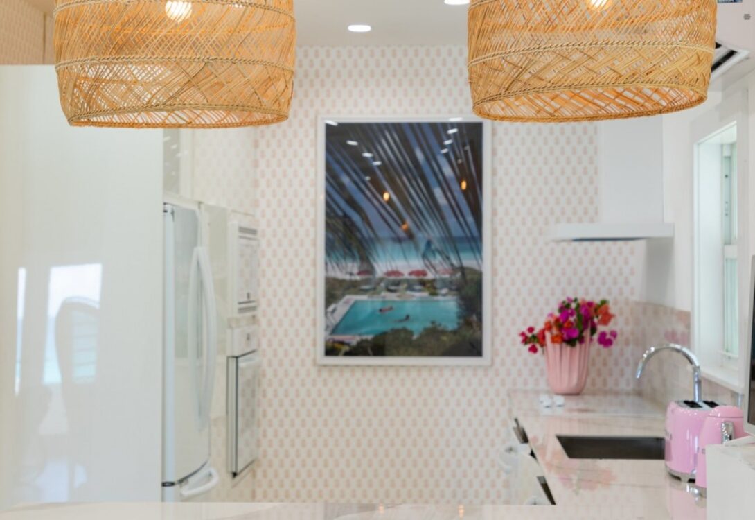 Step into your haven and be welcomed into a tranquil home filled with beautiful interiors decorated with iconic mid-century furniture featuring designers such as Karl Springer, Curtis Jere, and Vladimir Kagan, showcased alongside vintage rattan pieces. This adds charm and endless elegance to the property. The walls are adorned with stunning contemporary art from the owner's private collection.